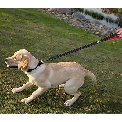 Place the webbing over the back of your dog's neck and loop towards the center of his chest (where the red arrow in the picture is pointing).